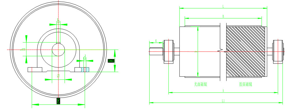 3.可做為固定式帶式輸送機(jī)的傳動滾筒兼除鐵器使用;